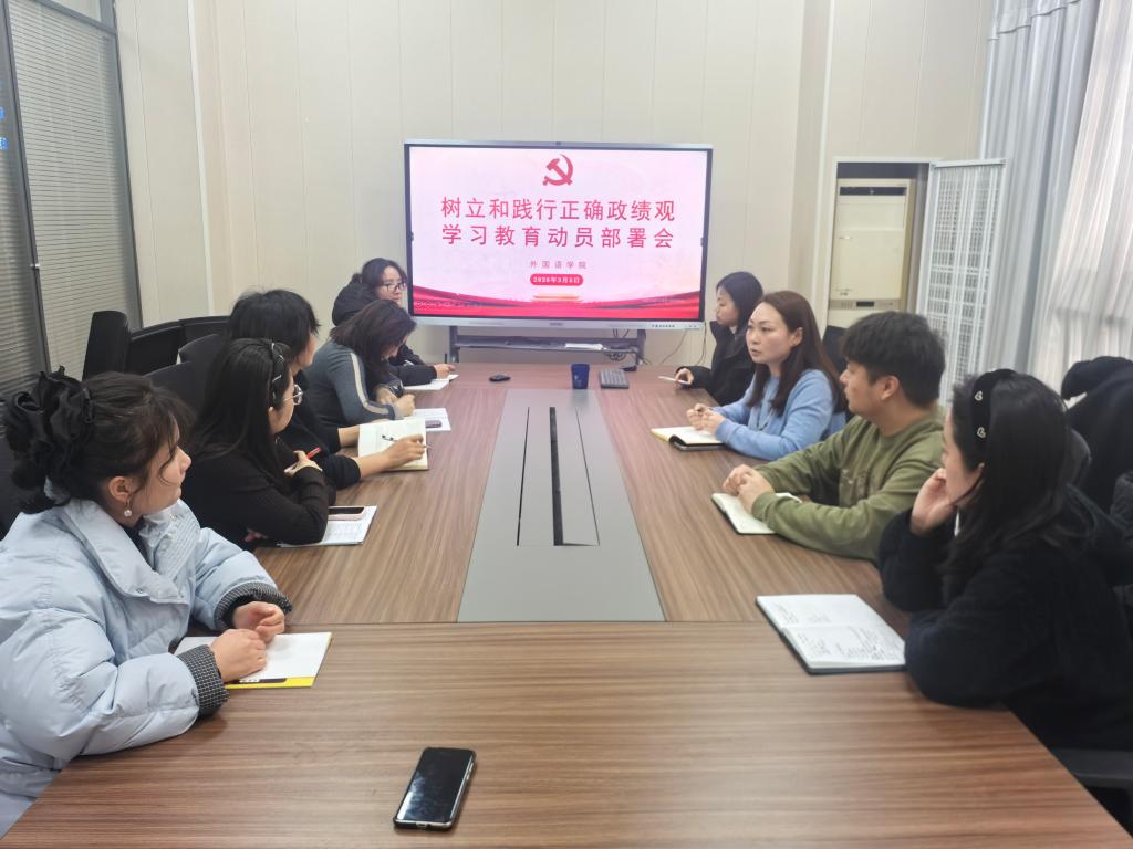 近日,外国语学院召开树立和践行正确政绩观学习教育动员启动会,学院领导班子及全体教师参会,全面落实学校党委相关工作部署,对学院学习教育工作进行动员安排。