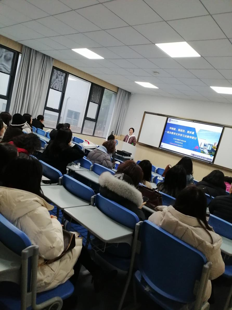 会议期间,陈萍带领全体教师认真研读本科大学英语教学管理相关文件,结合新学期教学重点,细致解读了教学实施的具体要求与操作细则。内容涵盖课程核心目标、学期教学部署、多元考核模式、课堂管理规范及过程性考核要点,重点强调教学规范化建设的重要性,并针对过往教学中的难点问题给予针对性指导。