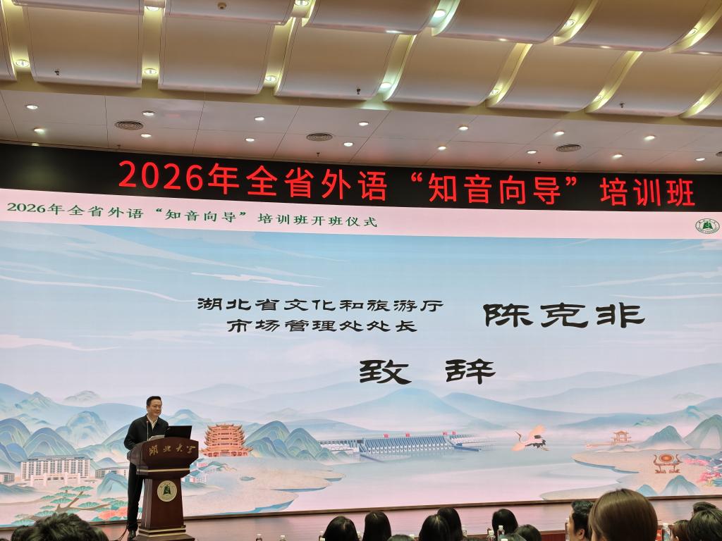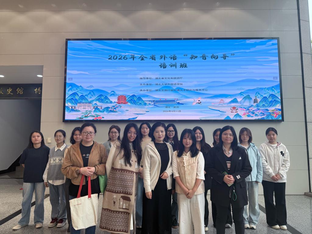 4月11日,由湖北省文化和旅游厅、湖北大学联合举办的2026年全省外语“知音向导”培训班在武汉顺利举行,我校外国语学院、法商学院15名师生代表参加培训,涵盖英、俄、日、韩四个语种。