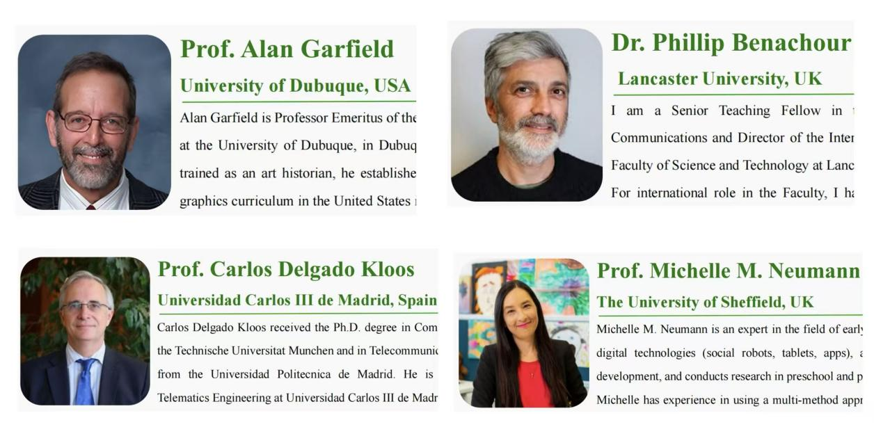 本届ICEDS 2026会议于4月15日至17日召开,汇集了全球多国教育学者。包括美国杜比克大学的Alan Garfield教授、英国兰卡斯特大学的Phillip Benachour博士、西班牙马德里卡洛斯三世大学的Carlos Delgado Kloos教授、英国谢菲尔德大学的Michelle M. Neumann教授等知名学者。与会专家围绕“科技重塑教育”主题进行了多场主旨演讲。