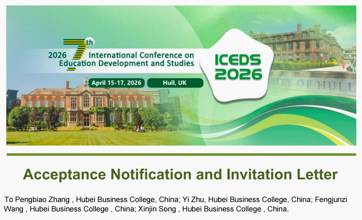 4月17日,在英国赫尔举行的第七届教育发展与研究国际会议(ICEDS 2026)上,我校外国语学院张鹏彪老师团队(成员:王冯骏子、朱祎)联合西南民族大学宋欣晋博士,受邀代表学校发表学术报告并参与国际交流,其研究成果获得与会专家肯定,并荣获小组演讲第二名。